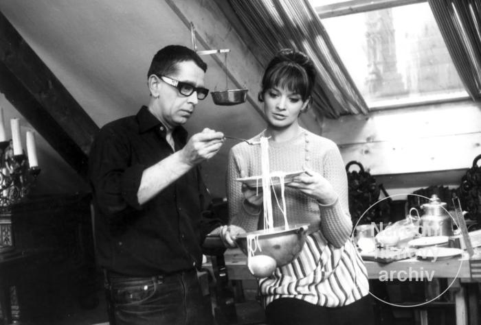 [12] Manželský svazek populárních herců je vyzdvižen například v reportáži časopisu Kino o připravovaném filmu Ženu ani květinou neuhodíš: [...] chci se ptát třeba na Janu Brejchovou, jak to bylo, když se ucházela o vlastního muže Vlastíka, který ve filmu ovšem jejím mužem není, nýbrž má docela jinou ženu, a obě tyto ženy a ještě tři jiné, co nejsou jeho ženami ani ve filmu ani doopravdy, prostě všech pět žen... Srov. Vousatý anděl. Kino 21, 1966, č. 26, s. 5.